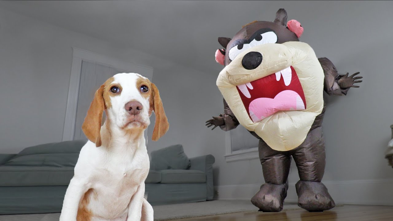 Watch Cute Puppy Indie Get Pranked by a Giant Tasmanian Devil from Looney Tunes with Help from Funny Dogs Maymo, Penny, & Potpie! Sweet little Indie is chewing on a bone with cute dog Potpie when the puppies hear a noise coming from the closet. Curious puppy Indie goes to the closet to find out what’s making all that noise, and she is surprised when a giant Tasmanian Devil jumps out and begins to chase her! At first the cute puppy scared of the ridiculously large inflatable cartoon character, but she quickly catches on that this is but one in a series of pranks, and soon enough her puppy dog pals Maymo, Penny & Potpie join in on the puppy playtime! These cute animals will make your day! One of the cutest puppy videos you’ll ever see! Cuteness level 10/10